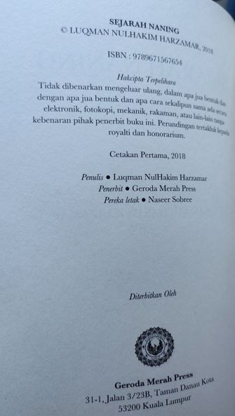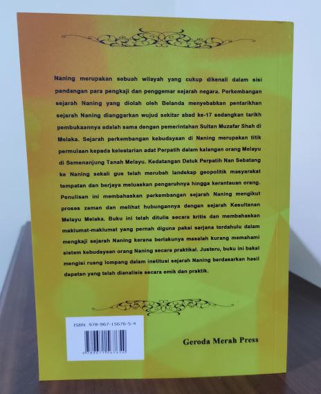 Justeru, buku ini bakal mengisi ruang lompang dalam Institusi sejarah Naning berdasarkan hasil dapatan yang telah dianalisis secara emik dan praktik.